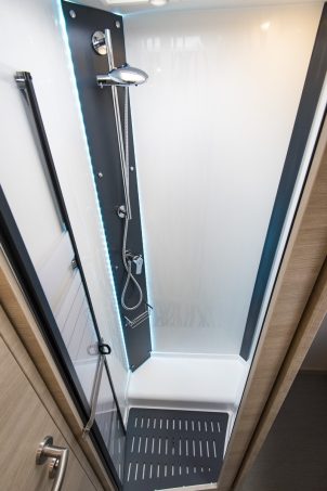 Mais l’intérêt réside avant tout dans la riche dotation standard dont sont équipés ces véhicules. Pour exemple, les modèles (non pourvus du chauffage Alde) reçoivent d’origine le chauffage Combi Truma EH dont la particularité réside dans une utilisation mixte entre chauffage et électricité. Inauguré dans les Edition 60, l’atypique aspirateur -et ses nombreux accessoires complémentaires- fait également partie de l’équipement de base. Enfin, la salle d’eau affiche un design novateur en profitant d’une colonne de douche rétroéclairée, d’un caillebotis noir ou encore d’une crédence type pont de bateau dans le cabinet de toilette.